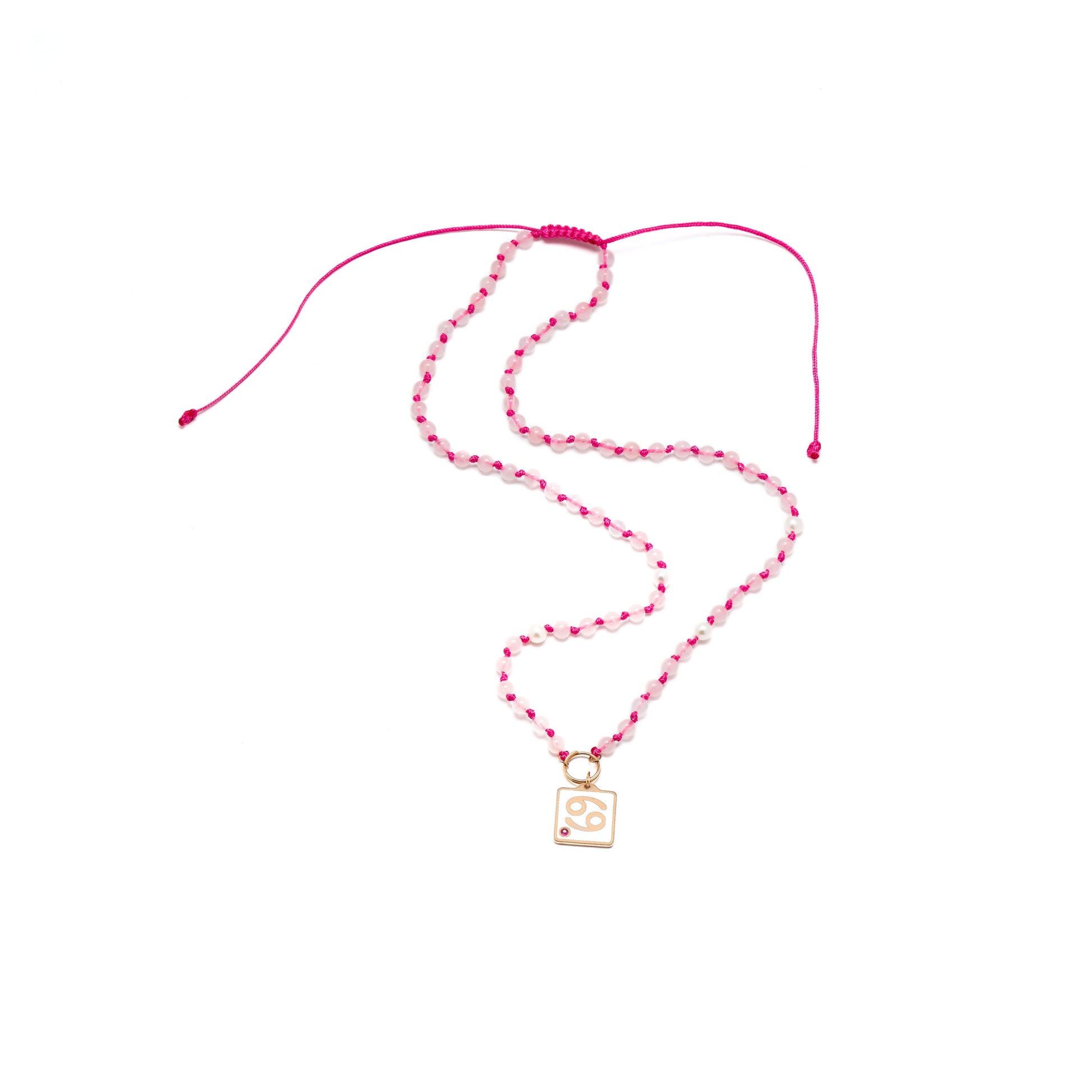 A string of rose quartz beads threaded on bright pink cord makes this necklace look like a sweet treat enjoyed on a sunny summer's day. Rose quartz is the stone of love and compassion, radiating a gentle and nurturing energy that mirrors the caring spirit of Cancer.