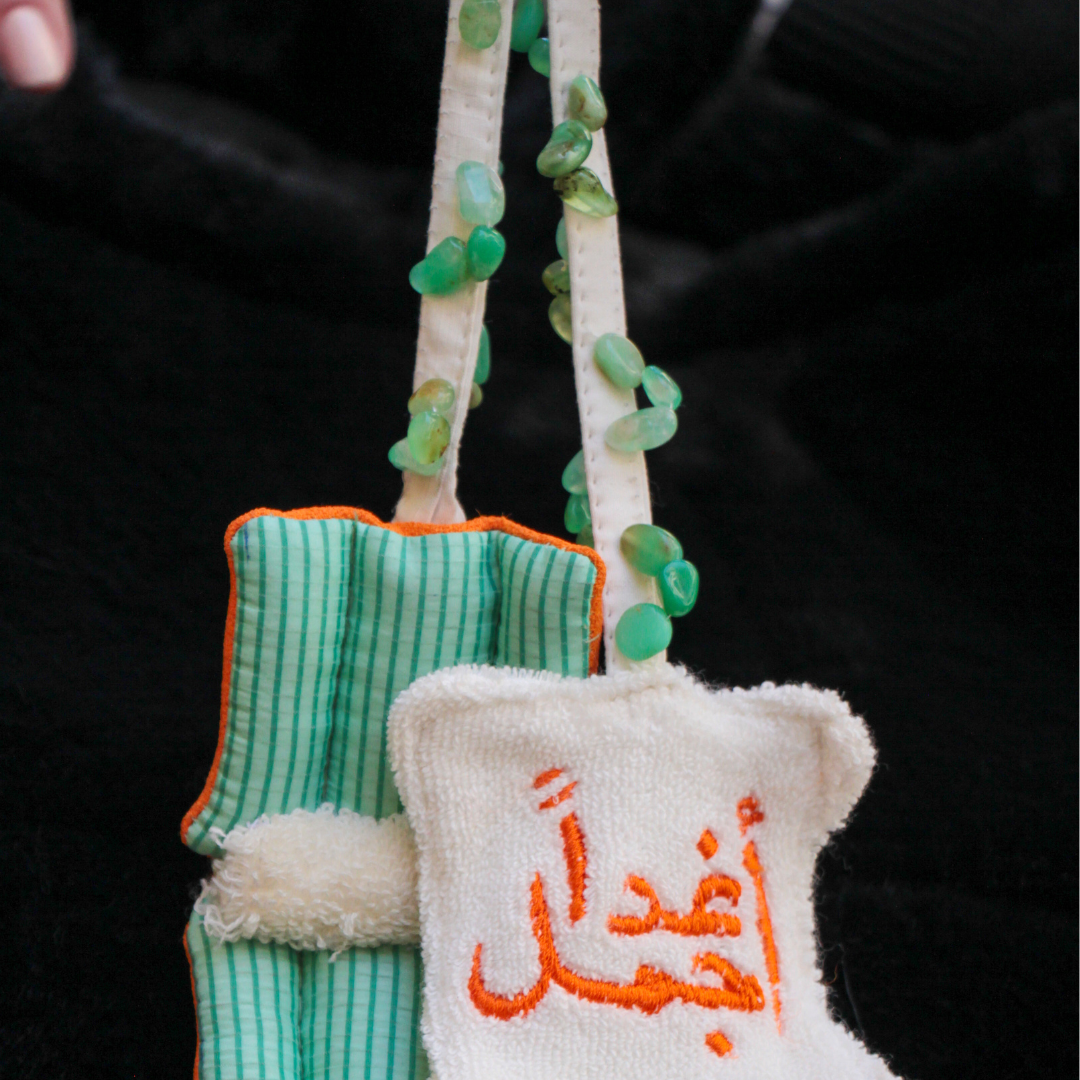As part of our journey to celebrate intention and meaning, we’ve collaborated with Creative Space Beirut—a free fashion school empowering emerging designers—to create these one-of-a-kind bag charms.Handcrafted by students using scrap textiles, beaded gemstones, and the message Better Than Yesterday, each charm is a meaningful twist on a trend, celebrating creativity, sustainability, and small steps forward.
