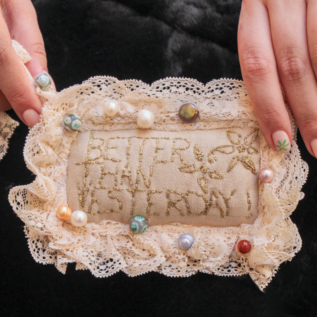 As part of our journey to celebrate intention and meaning, we’ve collaborated with Creative Space Beirut—a free fashion school empowering emerging designers—to create these one-of-a-kind bag charms.Handcrafted by students using scrap textiles, beaded gemstones, and the message Better Than Yesterday, each charm is a meaningful twist on a trend, celebrating creativity, sustainability, and small steps forward.