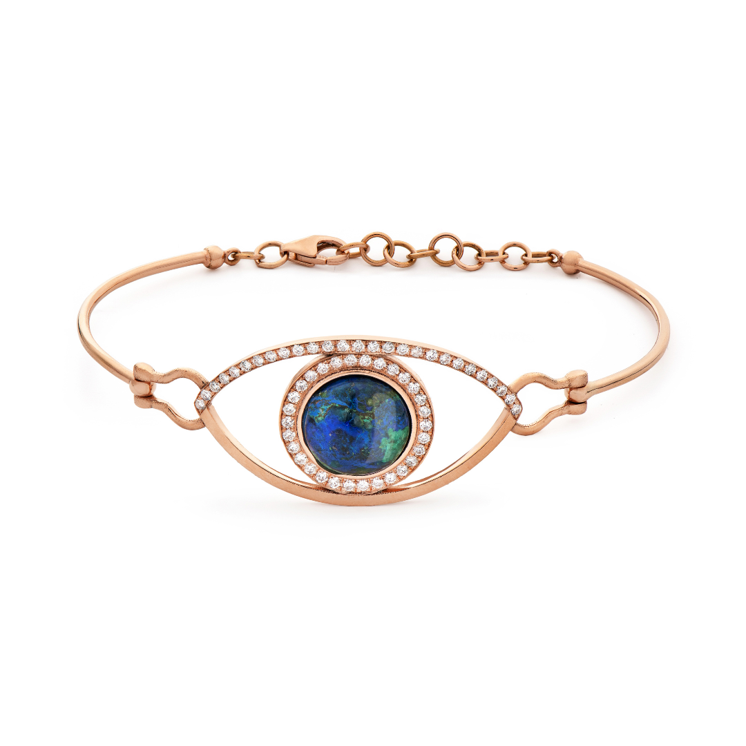 Designed to empower, this 18kt, rose gold bangle with diamonds, is a tangible reminder that your world is shaped by your vision. Infused with the calming energy of azurite malachite, it offers a fresh perspective and helps you find your place in the universe.